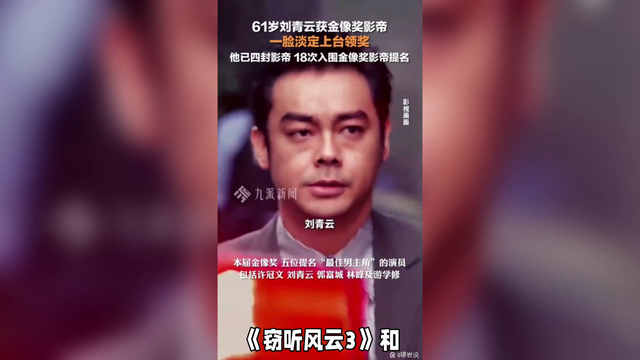 4月27日,第43届香港电影金像奖颁奖典礼上,刘青云再度封帝,这已经是他第四次夺得香港电影金像奖最佳男主角,引发了网友与观众的热议。